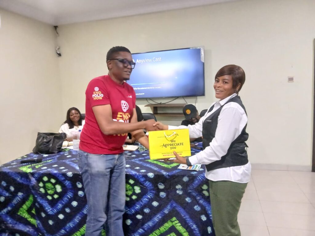 It’s wear Rotary and share Rotary day.A day every Rotarian wears Rotary branded apparels, accessories and act as visible ambassadors for Rotary and share their Rotary stories, message of service and goodwill, with others in person and online, to raise awareness and attract new members.As seen in the pictures, members of the Rotary Club of Port Harcourt Phoenix were all out Wearing and Sharing Rotary stories with friends, and intending Rotarians.